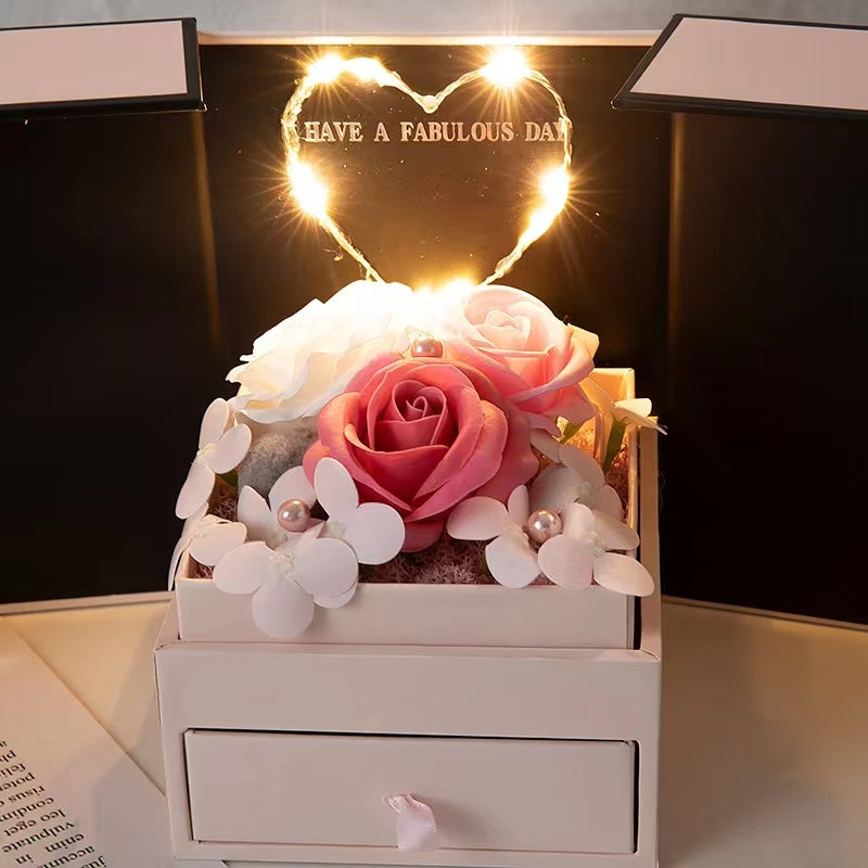 (1朵深粉)蔷薇表示你是我的唯一;搭配了(1朵浅粉)和(1朵白)表示世界只有你和我!